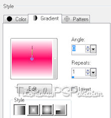 1. Abrir una nueva imagen transparente de 988 x 600 Px. Pintar con el gradiente formado por los colores #ffffff y #ff0563.
