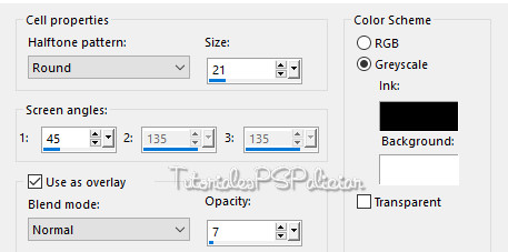 1. Abrir una nueva imagen transparente de 820 por 648 Px. Pintar con el color #1c840e. 2. Effects/Artistic Effects/Halftone
