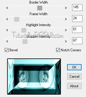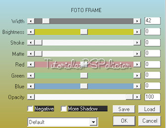 20. Activar Copy of Raster 4. Layers/Merge/Merge Down. 21. Cambiar el Blend Mode a Luminance. 22. Layers/Merge/Merge Visible. 23. Plugin BorderMania/Frame 2. 24. Plugin AAA Frames/ Foto Frame.