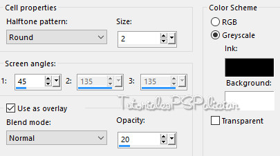 Materiales Tube 4720-luzcristina Plugins Tema Musical " Against All Odds" por Phil Collins. Arrastra la flecha para seguir el tutorial TUTORIAL 1. Abrir una nueva imagen transparente de 900 x 600 Px. Pintar con el color #18666a. 2. Nueva capa de trama. Pintar con el gradiente formado por los colores #18666a y #d4cbcc. 3. Effects/Artistic Effects/Halftone. 4. Cambiar el Blend Mode a Luminance (Legacy) 5. Nueva capa de trama. Selections /Load/ Save Selection/Load Selection From Disk/sel3953_aliciar.