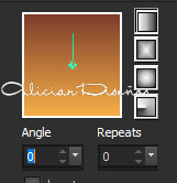 1. Abrir una nueva imagen transparente de 900 x 500 Px. 2. Plugin Alf's Power Grads/Square Grads por defecto. 3. Nueva capa de trama. Pintar con el gradiente formado por los colores #f5ae46 (Color 2) y #7e3d2b (Color 1)
