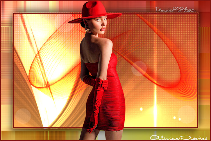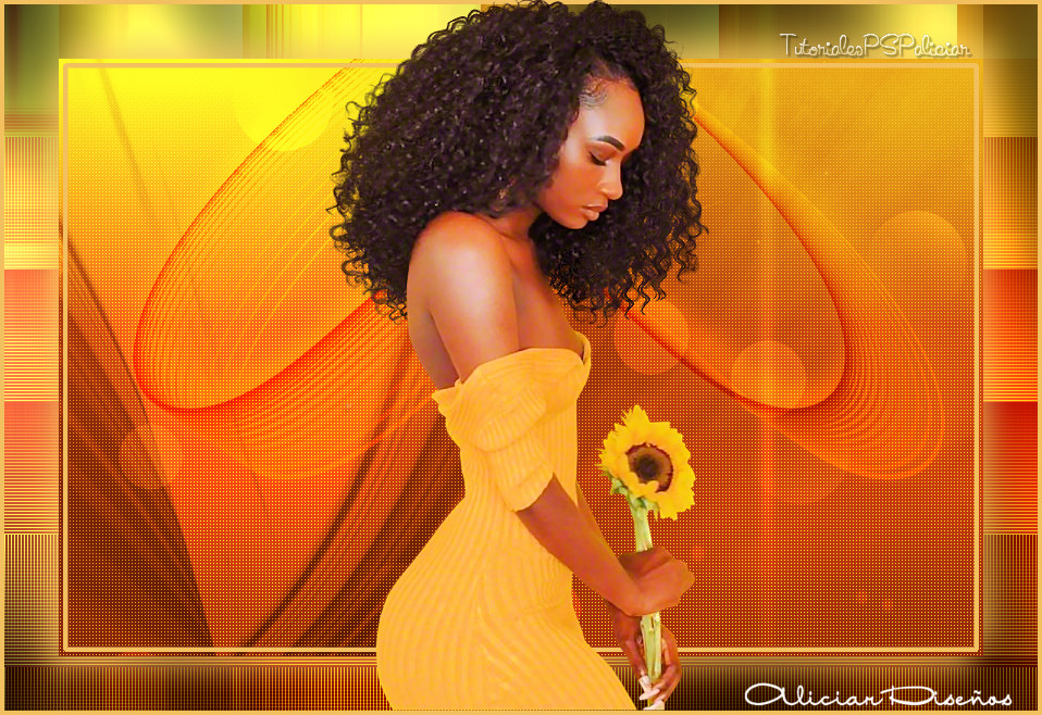 13. Selections/Modify/Contract/6. Selections/Modify/Select Selection Borders/2. Pintar con el color #f3c05f (Color 2). Agregar borde simetrico de 4 Px. color #f3c05f (Color 2). 14. Abrir el tube SvB (1135) Beauty by Syl, copiar, cerrar el original y borrar la marca de agua de la copia. 15. Adjust/One Step Photo Fix 16. Firmar, estampar la marca de agua tutorialespspaliciar, fusionar todo y exportar como JPG. Otra version con tube de Wieskes