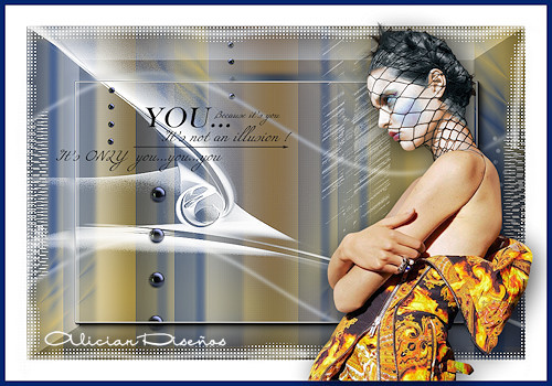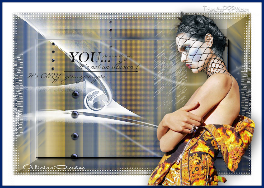 22. Agregar borde simetrico de 10 Px con el color del background #03256d. 23. Abrir el tube Alies 1VR915-woman-, duplicar y cerrar el original. Copiar y pegar como nueva capa. 24. Copiar y pegar como nueva capa el Word Art You. Acomodar a gusto. 25. En nuevas capas de trama firmar y estampar la marca de agua tutorialespspaliciar.