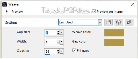 3. Effects/Texture Effects/Weave. Weave y Gap ( Color Foreground)