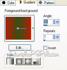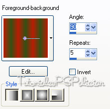 Tutorial 1. Abrir una nueva imagen transparente de 750 por 500 Px. y pintar con el color #345113 2. Nueva capa, pintar con el gradiente formado por los colores #b81d04 y #345113. 3. Plugin Backgroundmaniac/Stripes n´More