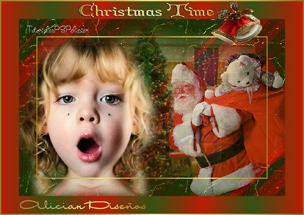 10. Layers/Merge/Merge Visible 11. Selections/Select All. Selections /Modify/Contract 50 12. Pintar el borde con un gradiente dorado. Quitar la selección. 13. Image/Add Borders/Symmetric/50 Px. Color #ffffff 14. Seleccionar el borde con la varita mágica y pintar con el gradiente formado 15. Image/Add Borders/Symmetric/3 Px. color #ffffff 16. Copiar y pegar cmo nueva capa el Word Art Christmas Time 18. Firmar, colocar la marca de agua tutorialespspaliciar, fusionar todo y exportar como JPG.
