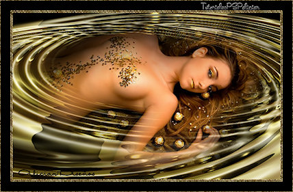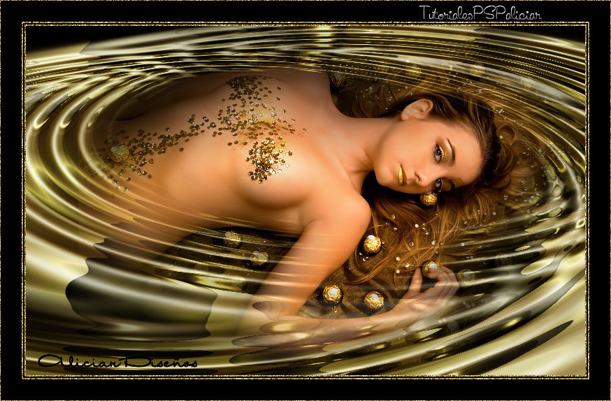 4. Nueva capa/Send to bottom . Pintar con el color #000000 5. Activar Raster 1, copiar y pegar el tube como nueva capa. 6. Image/Add Borders/Symmetrics/2Px. Color #ffffff seleccionar con la varita mágica y pintar con el patrón goldfill2 11. Firmar, colocar la marca de agua tutorialespspaliciar, fusionar todo y exportar como JPG