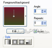 4. Nueva Capa. Selections/Load /SaveSelection/Load Selection From Disk/sel_53aliciar 5. Pintar la selección con el mismo gradiente pero configurar Linear/angulo y repeticiones 0 Invert Tildado