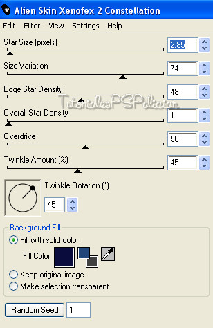 3. Plugin Alien Skin Xenofex 2/Constellation (Fill with solid color #0a0c3d)