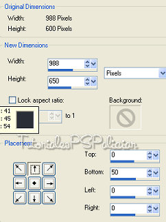 19. Fusionar Capas Visibles, aplicar la Máscara gradientedworisch. 20. Nueva capa. Layers/Arrange/Send to Bottom 21. Image/Canvas Size 988 x 650 PX. (Botom 50)