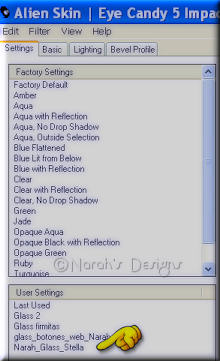 (Guardar el preset en Mi Escritorio y luego importarlo hacia el Eye Candy 5: Impact / Glass.)