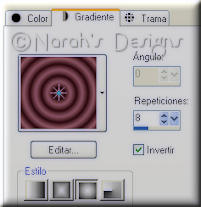 Este gradiente estará configurado estilo Reflejos / Repeticiones 0 / Horizontal 50 / Vertical 50, así: