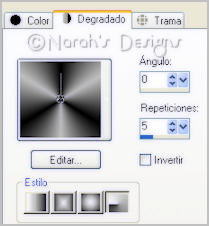 2. Con los colores #000000 y #c0c0c0, crearemos un gradiente Radial /Angulo 0 / Repeticiones 5, de esta forma:
