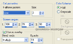 configurar Linear ángulo 45, repeticiones1, Invert Tildado.