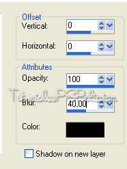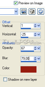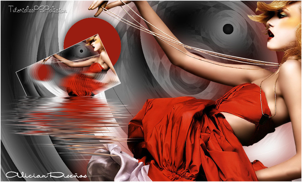 3. Copiar y pegar como nueva capa el tube calguisred23310 . Redimensionar un 70% y acomodar. 4. Effects/3D Effects/Drop Shadow Color #991e11 5. New Raster Layer. 6. Effects/3D Effects/Drop Shadow Color #000000 7. Image/Add Borders/Symmetric/2 Px. Color #ffffff 8. Duplicar la capa. (Layers/Duplicate) Image/Resize/30% 9. Image/Free Rotate 10. Effects/Image Effects/Offset 11. Plugin Andrómeda/ Velocity 12. Plugin Flaming Pear/Flood Color #991e11 13. Firmar, colocar la marca de agua tutorialespspaliciar, fusionar todo y exportar como JPG
