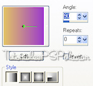 1. Abrir rings_aliciar.psp image, pintar esa imagen con el gradiente formado por los colores #e2c264 y #9c3bcb,