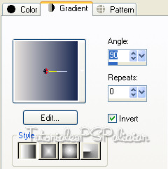 1. Abrir una nueva imagen transparente de 850 por 500 Px. Pintar con el gradiente formado por los colores #1a2850