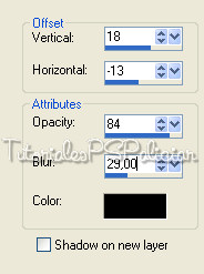 13. Copiar y pegar como nueva capa el tube calguis2elegante639. Redimensionar un 80% 14. Effects/3D Effects/Drop Shadow