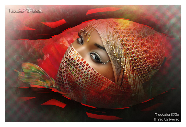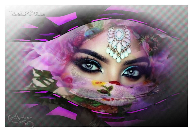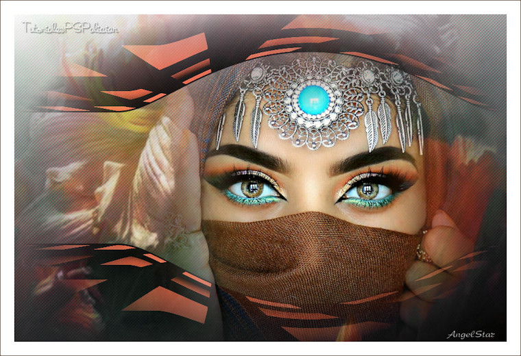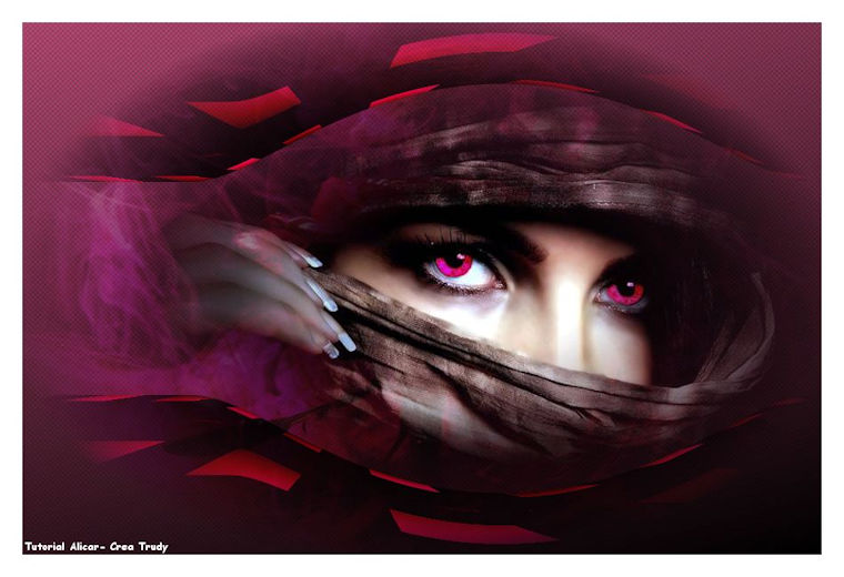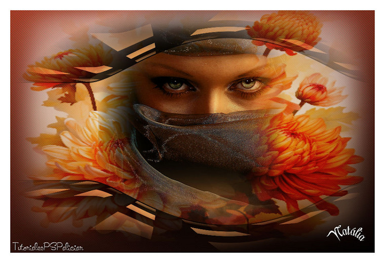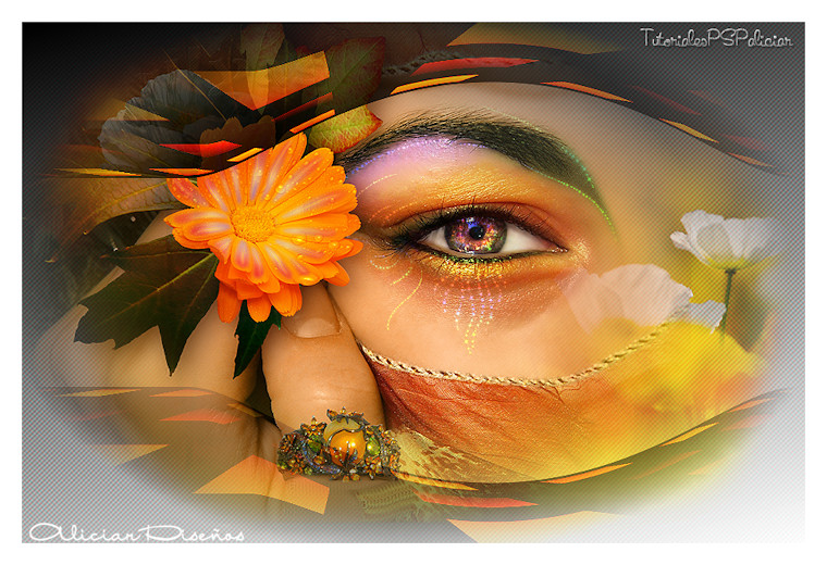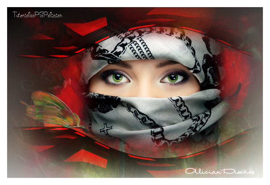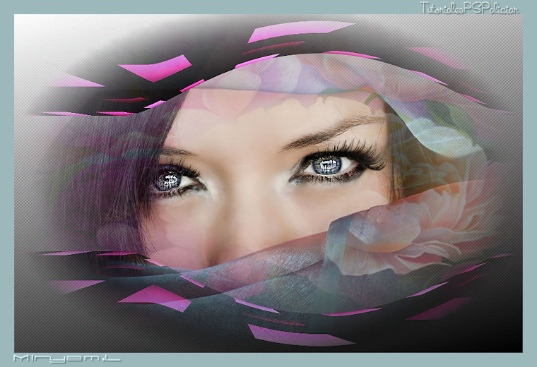 10. Layers/New Mask Layer/ From Image. Aplicar la máscara 20/20. Fusionar grupo. (Merge group) 11. Adjust/Brightness and Contrast/ Brightness and Contrast: 44/78 12. Duplicar la capa de la máscara. Fusionar hacia abajo. (Merge Down) 13. Duplicar la capa nuevamente. Image/Mirror/Mirror Vertical (Flip en versiones viejas) 14. Activar Group Raster 3. Copiar y pegar como nueva capa el tube 723-eyesmist-LB TUBES. 15. Fusionar todo. Adjust/ Sharpness/Sharpen 15. Agregar borde simétrico de 25 Px. color #ffffff o a gusto. 16. Firmar, colocar la marca de agua tutorialespspaliciar, fusionar todo y exportar como jpg
