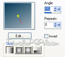 1. Abrir una nueva imagen transparente de 988 x 600 Px. 2. Pintar con el gradiente formado por los colores #063a59 y #a3b4bd.