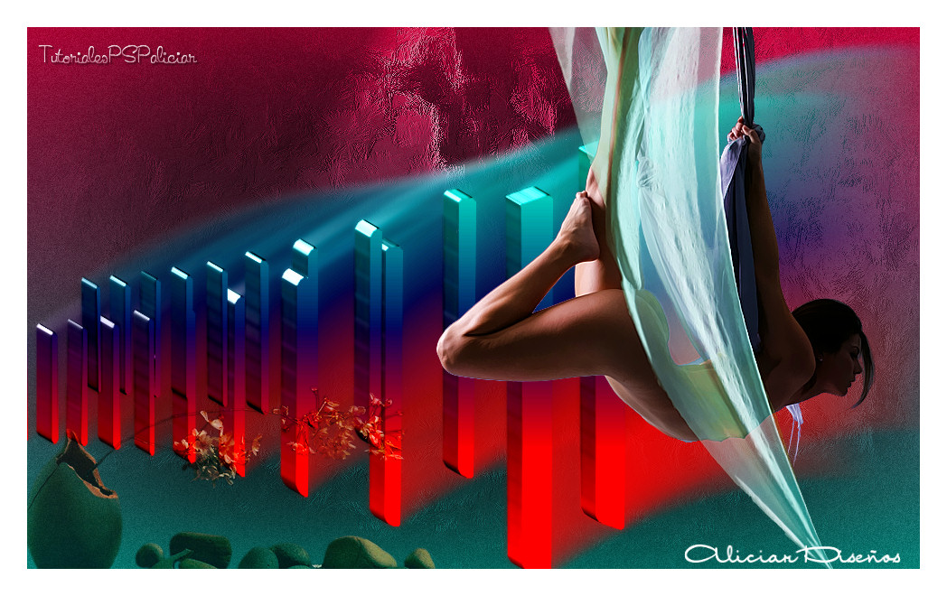 15. Copiar y pegar como nueva capa tubed_by_thafs_144. 16. Imge/Mirror. Redimensionar 75%. Cambiar el Blend Mode a Hard Light y bajar la opacidad a 70% 17. Copiar y pegar como nueva capa el tube principal a elección. 18. Agregar borde simétrico de 30 Px. color #ffffff 19. Firmar, colocar la marca de agua tutorialespspaliciar, fusionar todo y exportar como jpg