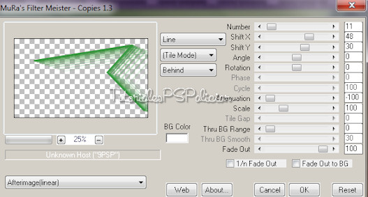 7. Plugin Eye Candy 5 :Impact/Extrude/Settings/User Settings/Preset Isla_aliciar . 8. Plugin Mura's Meister Copies/Afterimage(linear)